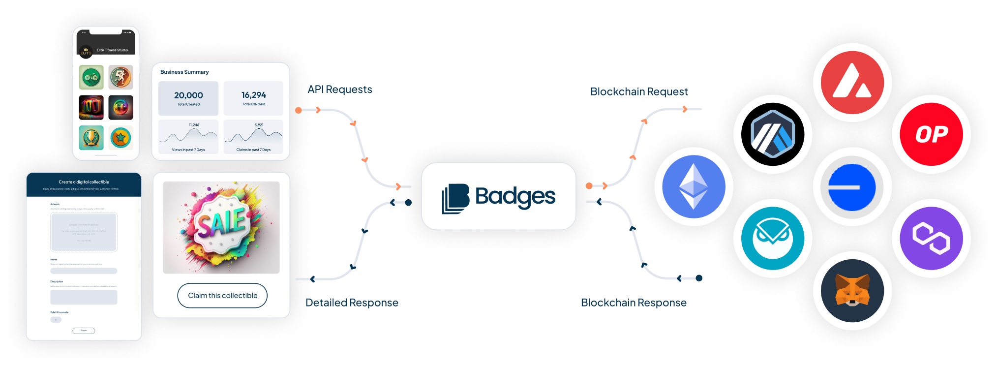 Just like cloud services or credit card processors that charge fees, blockchains also impose a nominal fee for every transaction, often referred to as gas fees and usually paid in cryptocurrency. However, this can serve as an entry barrier for new users. To mitigate this issue, we've incorporated transaction relays. These are responsible for managing blockchain transactions from users and the Badges API, enabling an easier onboarding experience.